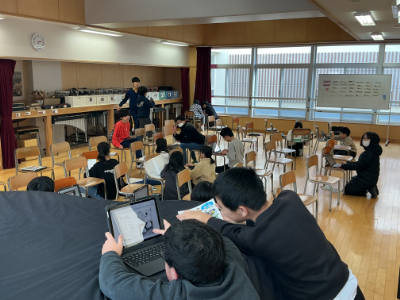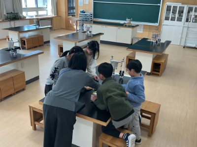 3年1組は、理科室で先生と数人のリーダーさんとで体育のチームを決めていました。