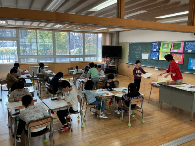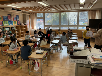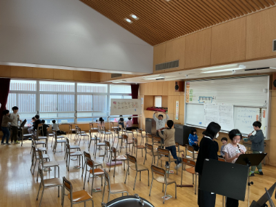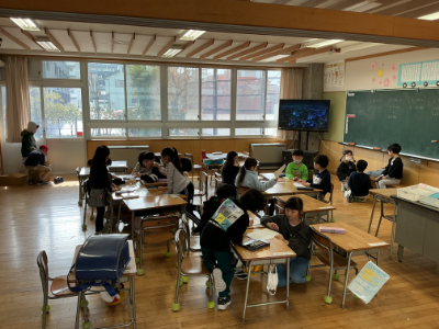 1年2組は、明日のお楽しみ会を前に打合せをしていました。「いよいよ明日本番だ!」という声が聞こえてきました。