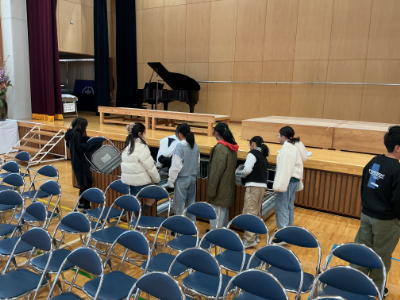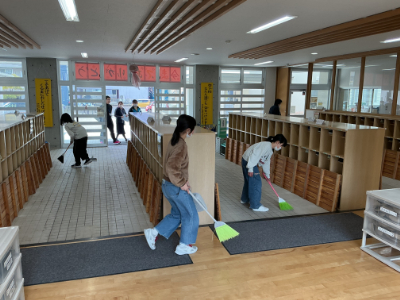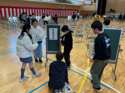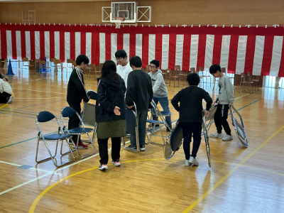 みんなが下校した後、5年生が卒業式の準備のお手伝いをしてくれました。