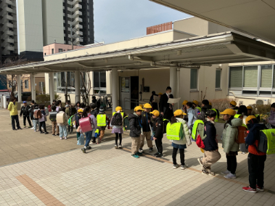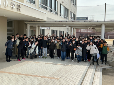 6年生は、最後のみんなでの下校です。記念に「ハイ・チーズ!」明日は素敵な卒業式にしましょう。