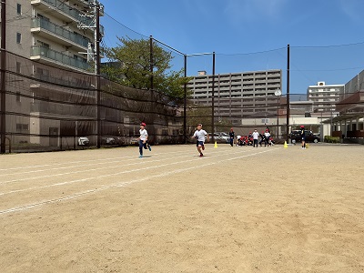 5月の運動会に向けて、グラウンドでは50m走のタイムを計る学年が増えてきました。子どもたちの走りは力強く、フォームがカッコいいです。鬼ごっこも大盛り上がりです。