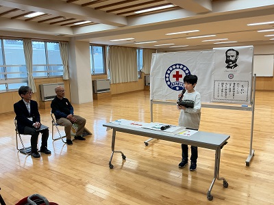 日本赤十字社新潟市支部から指導講師の先生をお招きし、JRC登録式を行いました。実行委員5名の児童が、登録式を運営してくれました。「困っている人を救いたい」という赤十字の精神に基づき、行動目標「気づき、考え、実行する」を大切にして学校生活を送ります。
