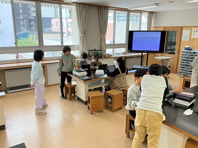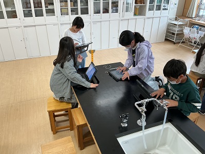 「ふりこが一往復する時間を変えるには、どうするとよいだろうか?」予想を立て実験し、記録をもとに考えをまとめます。班の仲間と意見交換しながら活動する姿が愉しそうでした!