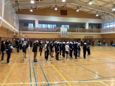 2組さんが先に学校に到着です。