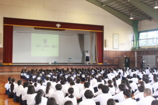 9月24日(水)秋晴れのさわやかな風を感じます。朝、生徒朝会を行いました。おおとり祭のスローガンについて実行委員会から提案がありました。また、生徒会役員選挙に向けて選挙管理委員会から呼びかけがありました。