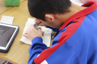 12月8日(月)1年生数学、平面図形と3年生美術、篆刻の授業を参観しました。