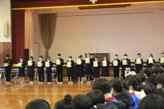 1月15日(木)第2回生徒総会を行いました。全校生徒の集中した態度、建設的な意見、丁寧な応答、円滑な議事進行が見られ、成功裏に終了しました。その後、新生徒会役員の任命式と新旧引継ぎ式が行われました。