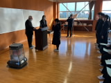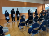 2月18日(水)に小合中学校同窓会の入会式が行われました。当日は同窓会長、副会長からご来校いただき,小合中学校同窓会の話をいただきました。その後、学年評議員として委嘱された代表生徒が,これまでに地域の方々に支えていただいた感謝を述べた後,同窓生として地域のために貢献したいとの決意表明がありました。