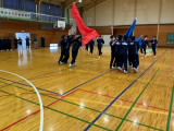 令和8年度の体育祭は、5月22日(金)に開催されます。このため、3月16日(月)に令和8年度の体育祭軍団抽選会が行われました。生徒会本部からの抽選方法の説明後,1,2年の2つの軍団が,ゲームをしながら,紅軍,蒼軍を決めました。最後に,軍団ごとに整列し,応援団長,副応援団長がそれぞれの決意表明をしました。