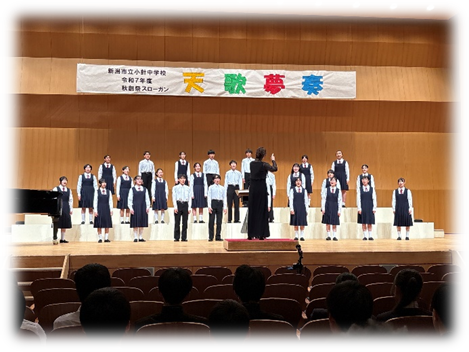 また、全校合唱では「心と心で」を全学年が一体となって歌い、ホール全体に美しいハーモニーが響き渡りました。