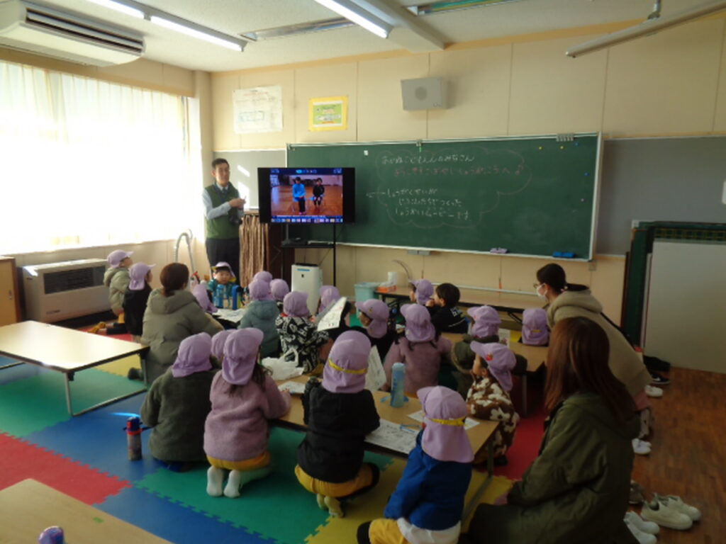 こどもたちも、初めて体験するスポーツに興味津々。チームに分かれゲームを行いました。