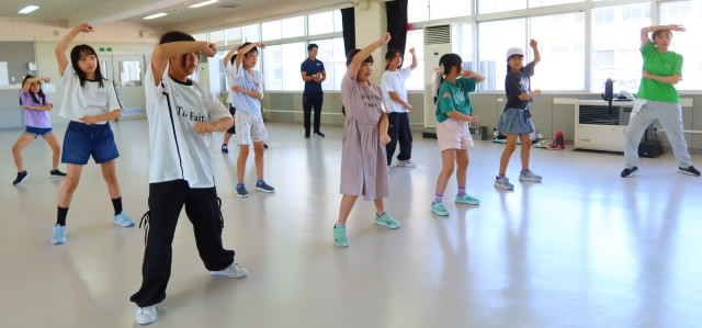 全校の前で踊るときには、「鏡のように」逆の手足からの動きになります。