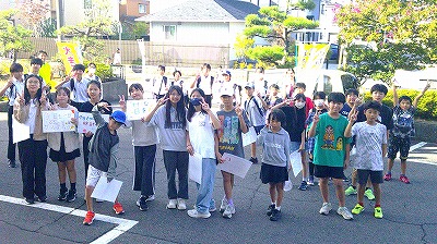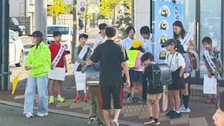 朝、中学校の生徒が街頭であいさつ運動を行っています。江南小学校からも5年生の希望者が一緒に参加しています。委員会や各クラスの取組で普段から自主的にあいさつ運動をしている江南っ子ですから、大きな声で堂々と挨拶をしていました。秋晴れの下、さわやかな挨拶で町を明るくする江南っ子、いいね!