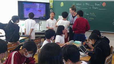 小学校でも英語の学習が必修となって数年が経ちました。江南小学校でも、学年に合わせて英語の授業が行われています。ALT(アシスタントランゲージティーチャー)のネイティブな英語に触れ、将来の多様な他者とのコミュニケーション能力の向上を図っています。グローバル社会に向けて学ぶ江南っ子、いいね!