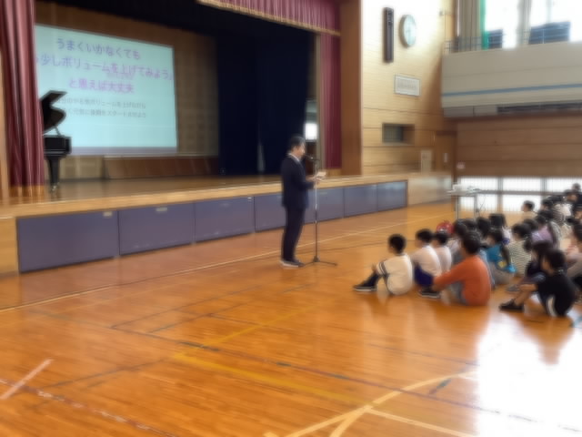 終業式では、校長先生が「目標に向かってやり抜いたことは、とてもすばらしいことです。半年間がんばった自分を振り返りましょう。」と呼びかけました。自分のよさやがんばりを自覚して、後期へのステップアップにつなげてほしいと思います。