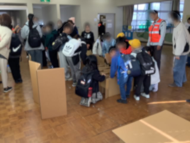 防災にまつわるクイズや工作、疑似体験を半日たっぷり行いました。子どもたちは、命を守る行動について真剣に説明を聞いたり、自分の生活を振り返って防災グッズを選んだりしていました。