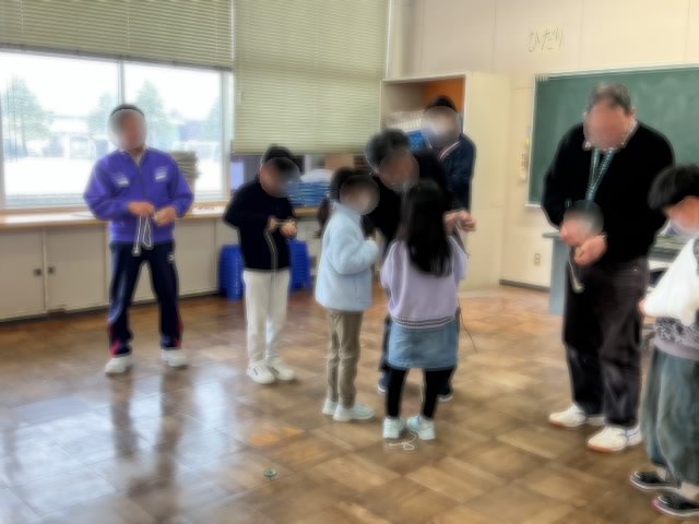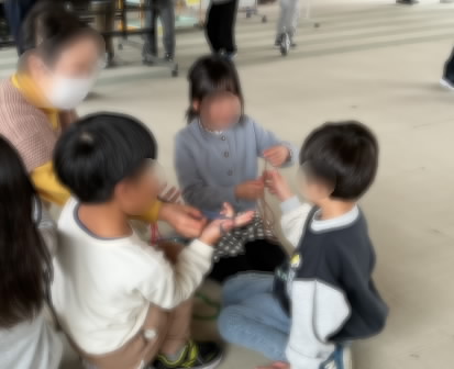 「やった!5回続けてできた!」「いっしょに、二人あやとりしようよ。」子どもたちの楽しそうな声があちこちで聞こえてきました。達人の皆さんも、にこにこ見守ってくださっていました。昔ながらの遊びがもつ、自分の手や体を使って繰り返し遊べる魅力は、令和の子どもたちにも伝わっていくようです。