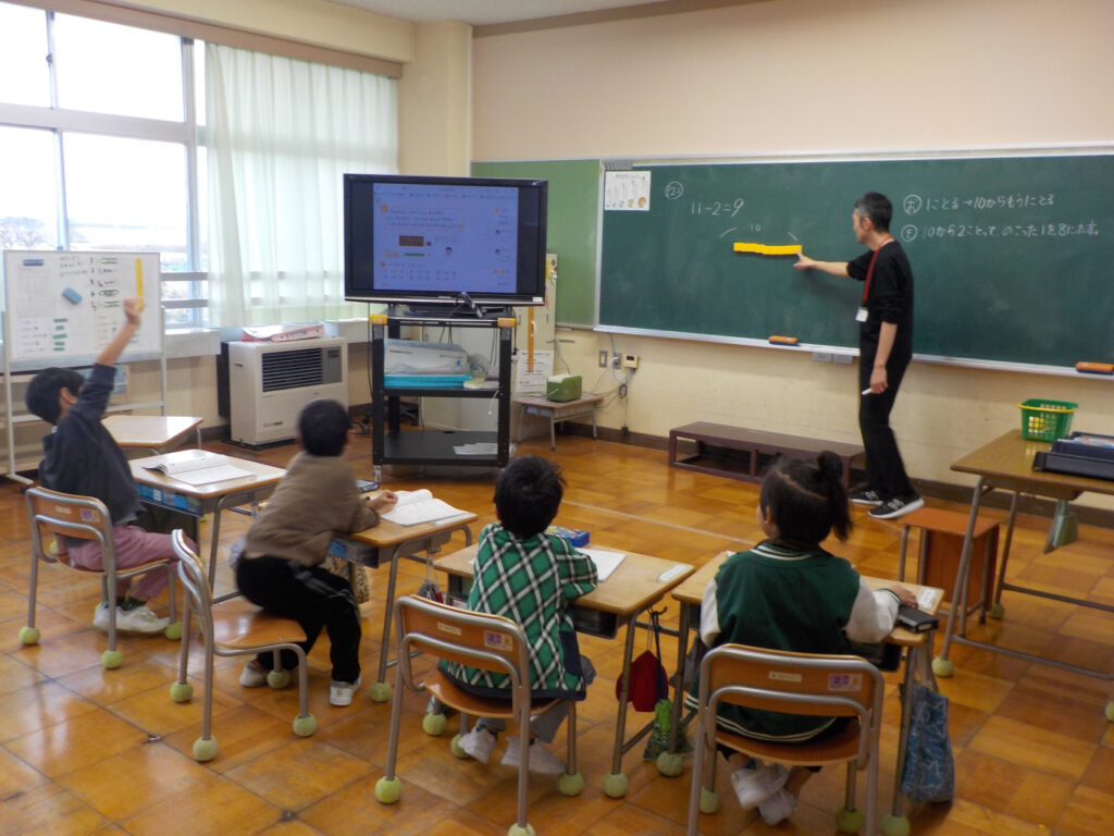 11月26日(水) 1年生が算数で、繰り下がりのある引き算の学習をしていました。11-2の2をどこから引くのか…10から2を引いて1を足すのか、1を引いて10から残りの1を引くのか、それぞれの方法を子どもたちが説明し …