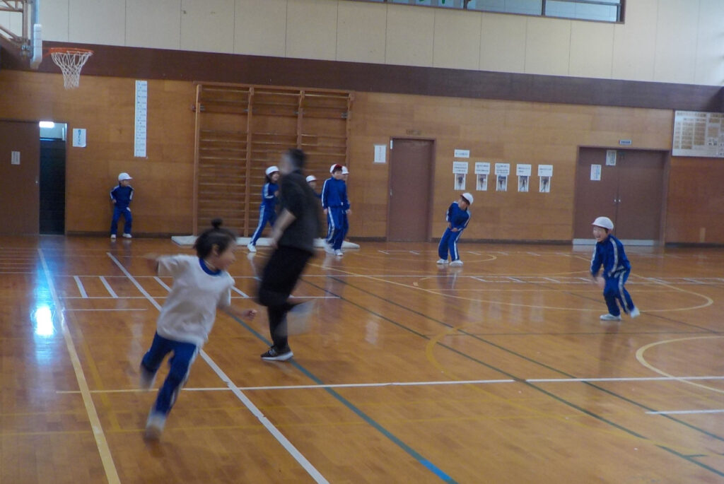 11月28日(金) 1年生の体育では、「増え鬼」をしていました。鬼にタッチされると、タッチされた人も鬼になっていきます。鬼は先生からスタート。どんどん鬼が増えていって最後に残ったのは、誰かな? …
