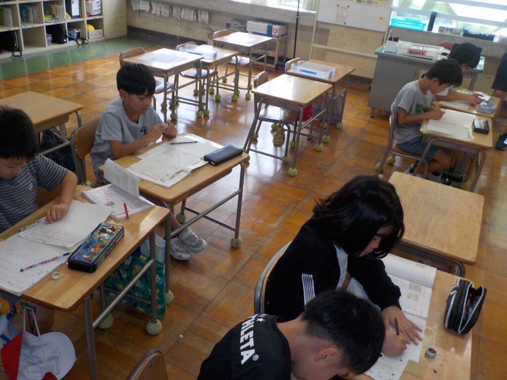 9月29日(月) 2年生は国語「絵を見てお話を書こう」で、4コマの絵「クマとキツネが橋が壊れて渡れなくなった→3コマ目→無事に家に帰ることができた」の3コマ目のお話をつくっていました。どんな楽しいお話 …