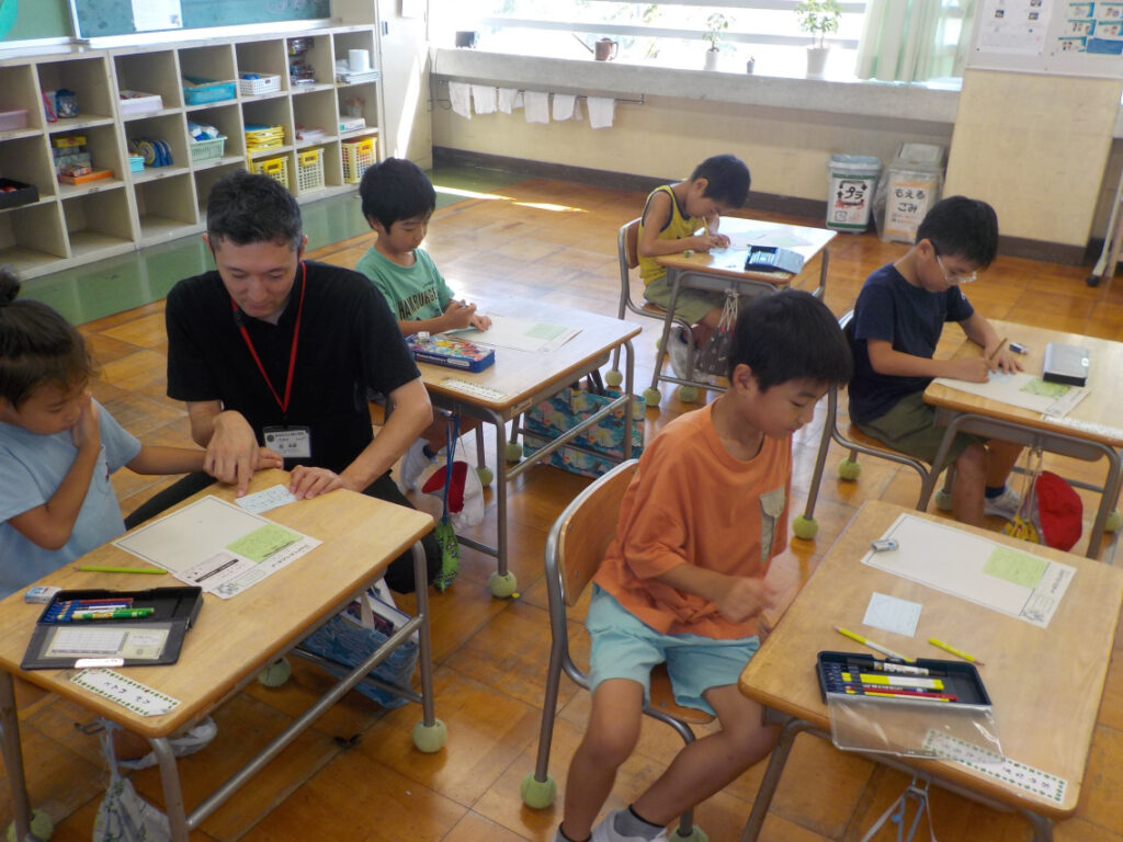 1年生は、グレートカードを書いて友だちに渡していました。小瀬小学校では、自分のよさに気づき、自信をもてるように、子どもたちが互いのよさやがんばりを認め合うグレートカードを書いて渡しています。友だちからカードをもらった子は、うれしそうにカードを読んでいました。