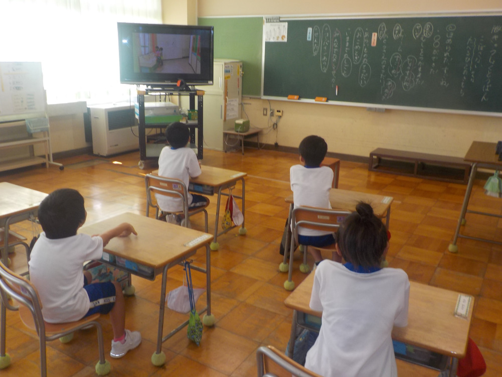 1年生は、「で~きた」というVTRを視聴していました。「できない!」に気づけば必ず「できる!」という内容で、手洗いができるかを確かめていました。
