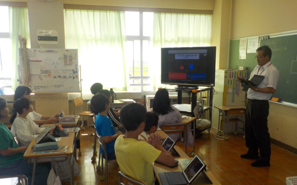 5・6年生の外国語は、学習のまとめで、Kahoot!(クイズ作成アプリ)で英語に関するクイズをしました。3人組のチームで、正解数を競い合いました。
