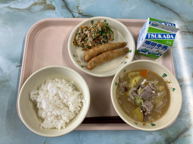 ご飯、さつま汁、ニギスフライ、きりざい、牛乳 でした。