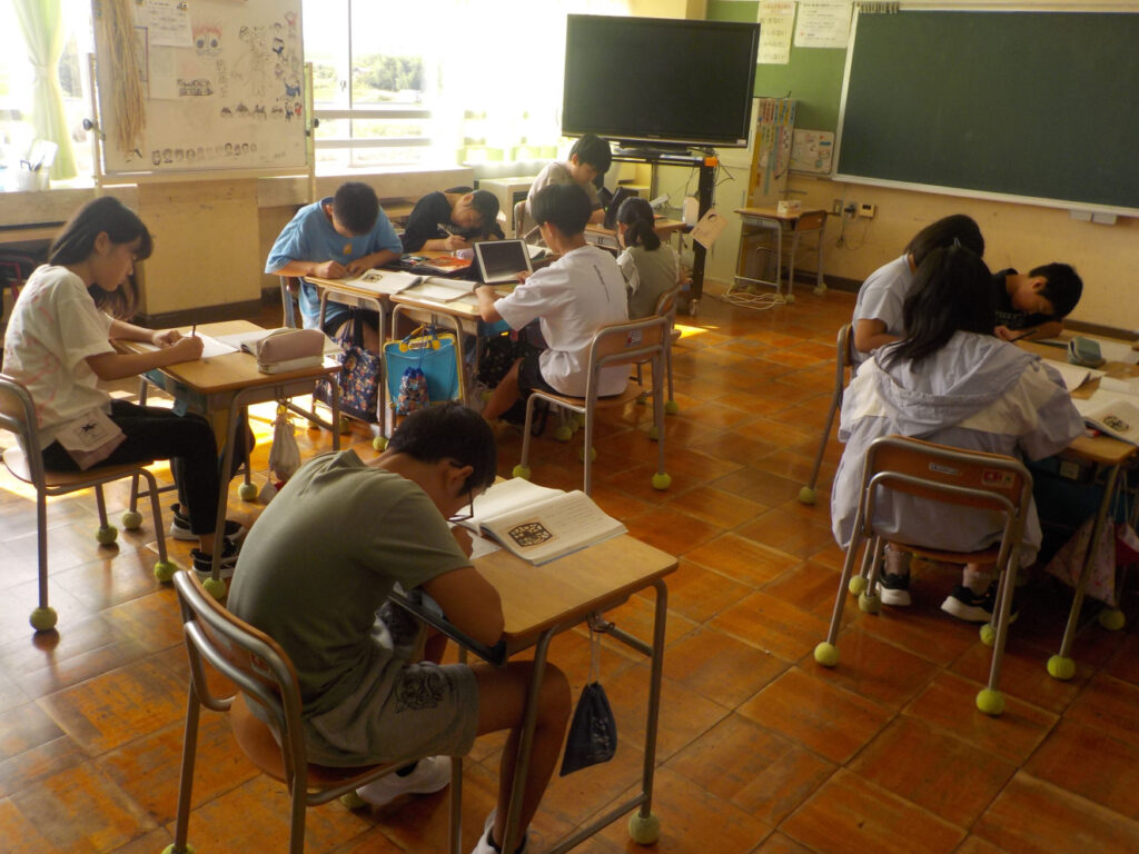 5・6年生は、国語で「注文の多い料理店」を場面分けして読み取っていました。シートに読み取ったことをまとめていく作業を一人で進めるか、グループで話し合いながら進めるか、やりやすいように自分が選択して作業していました。