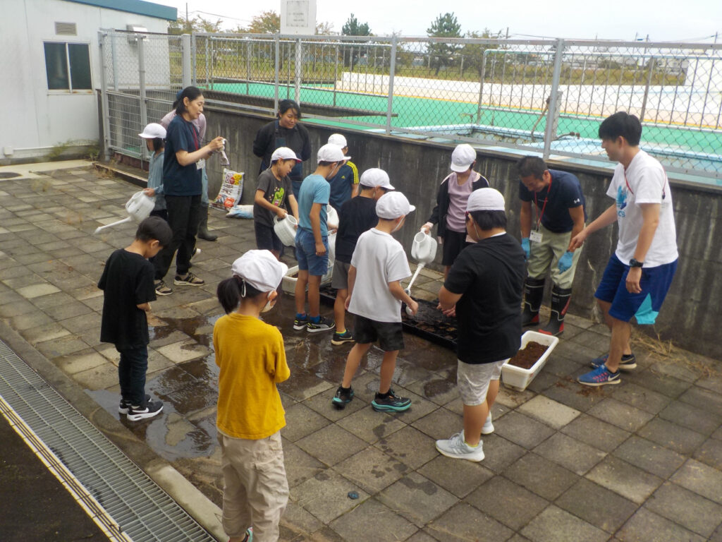 10月8日(水) 2・3年生が、そら豆を植えました。ポットに植えて水やりをして…。ちゃんと芽が出てくるかな?