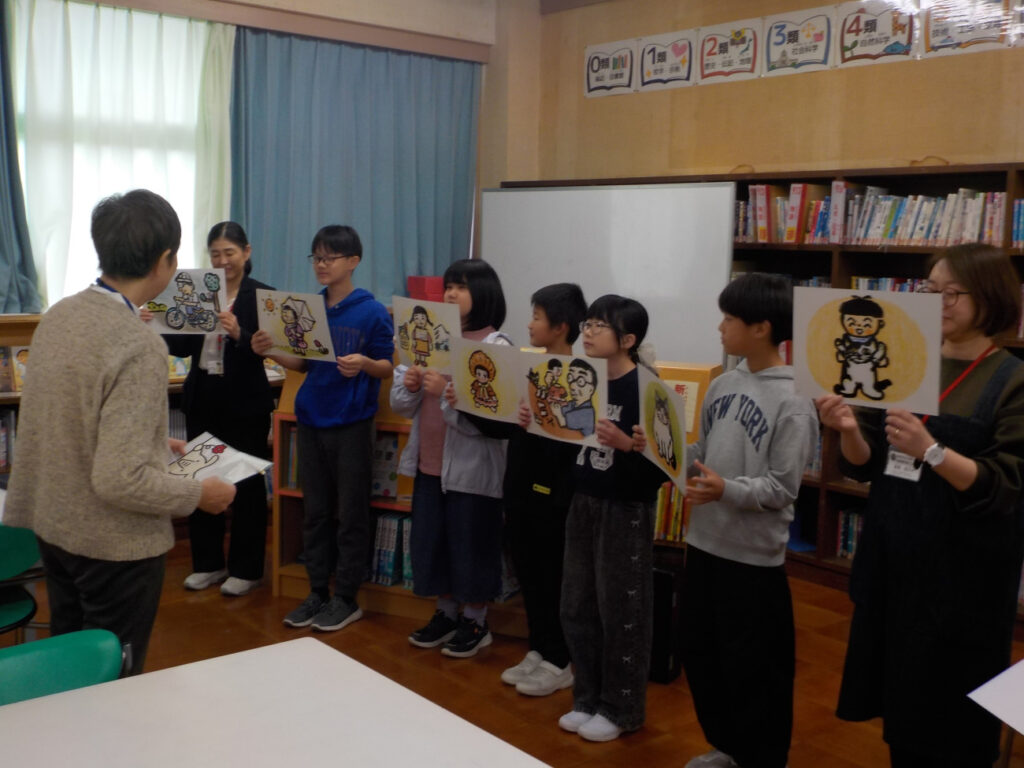 5・6年生は、ストーリーがつながっていく「かわださん」という紙芝居をつなげて読んでいく練習をしました。つなげてうまく読んでいくためのアドバイスをいただきました。今度、全校に読み聞かせを披露するそうです。楽しみです!
