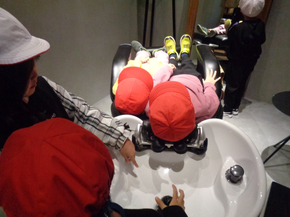 美容院では、髪をカットする椅子に座らせてもらいました。