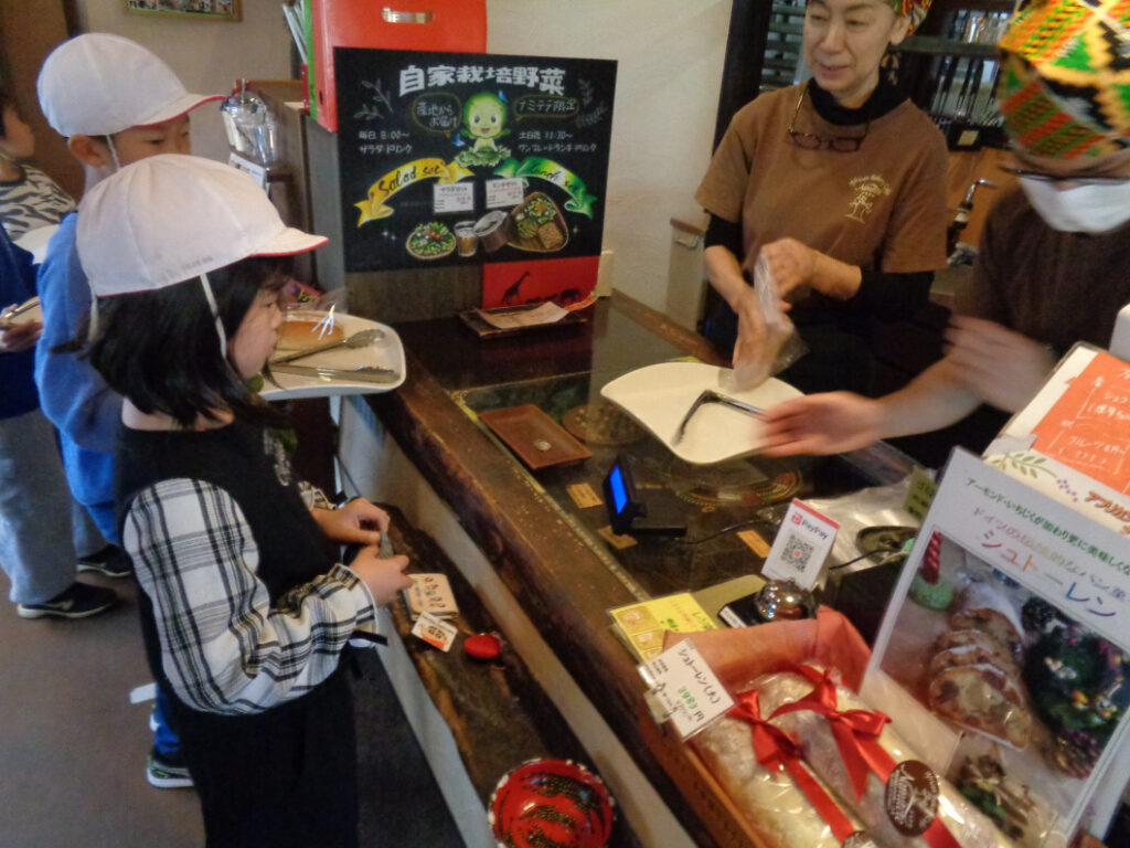 1・2年生が、生活科で、みずき野へ探検に出かけました。みずき野のパン屋ナミテテさんと、美容院・カフェの「トコノマ」さんを見学してきました。どんなお店かな?どんな仕事をしているかな?発見があるかな?たくさん質問をしてきました。