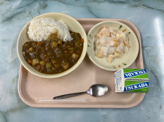 ご飯、シーフードカレー、ヨーグルト和え、牛乳 でした。