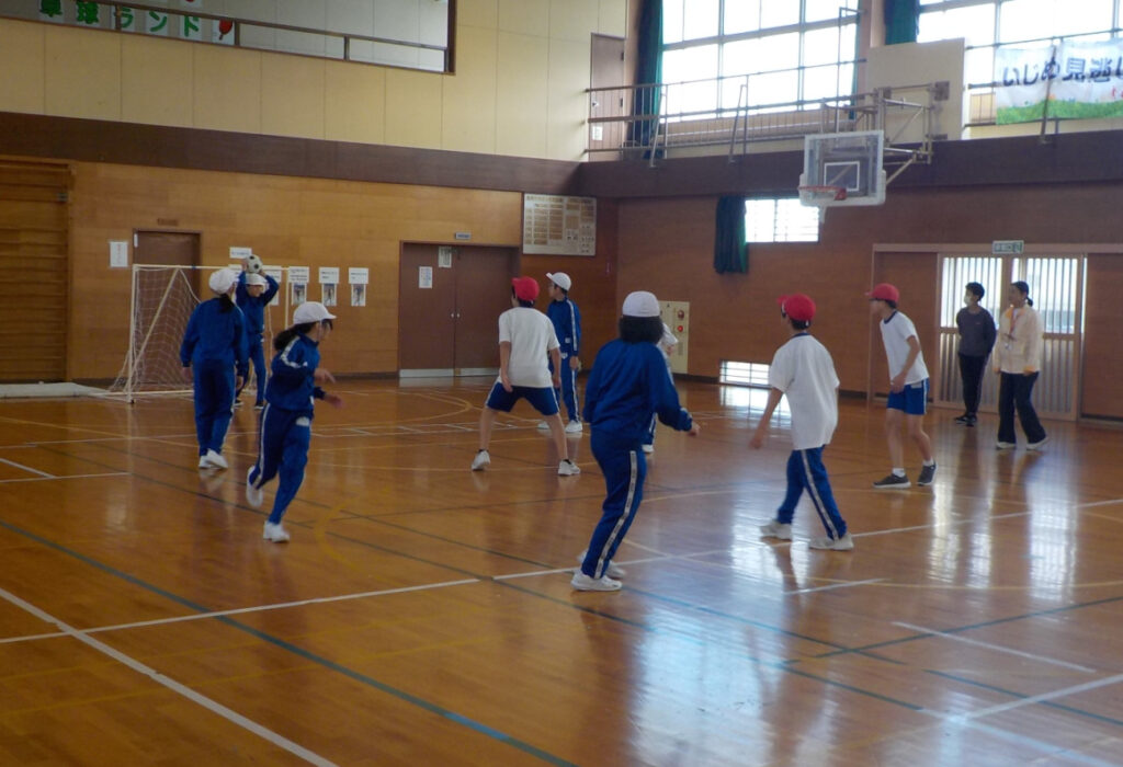 5・6年生は体育で、フットサルをやっていました。くじ引きでいろいろな人とチームになりながら、楽しんでいました。次第にボールの扱いやポジション取りが上達して、ゴール前のパスをダイレクトシュートで決める様子も見られました。
