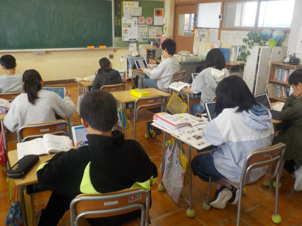 5・6年生は国語で、和の文化を調べて、ポスターを作ります。自分が伝えたい和の文化を選び、本やインターネットで調べて、その文化の大切なところをどのような見出しで効果的に伝えるかを考えていました。