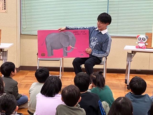 11月21日(金) BSNキッズプロジェクトで、「なじラテ」などで活躍している麦島アナウンサーが来校して、読み聞かせをしてくれました。アナウンサーの仕事について教えてもらった後、大きな声を出すためのロングトーンの練習や上手に食リポするコツを楽しく教えてもらいました。読み聞かせでは、「わにわにのおふろ」と「みんなうんち」を読んでくれました。とても楽しい時間になりました。