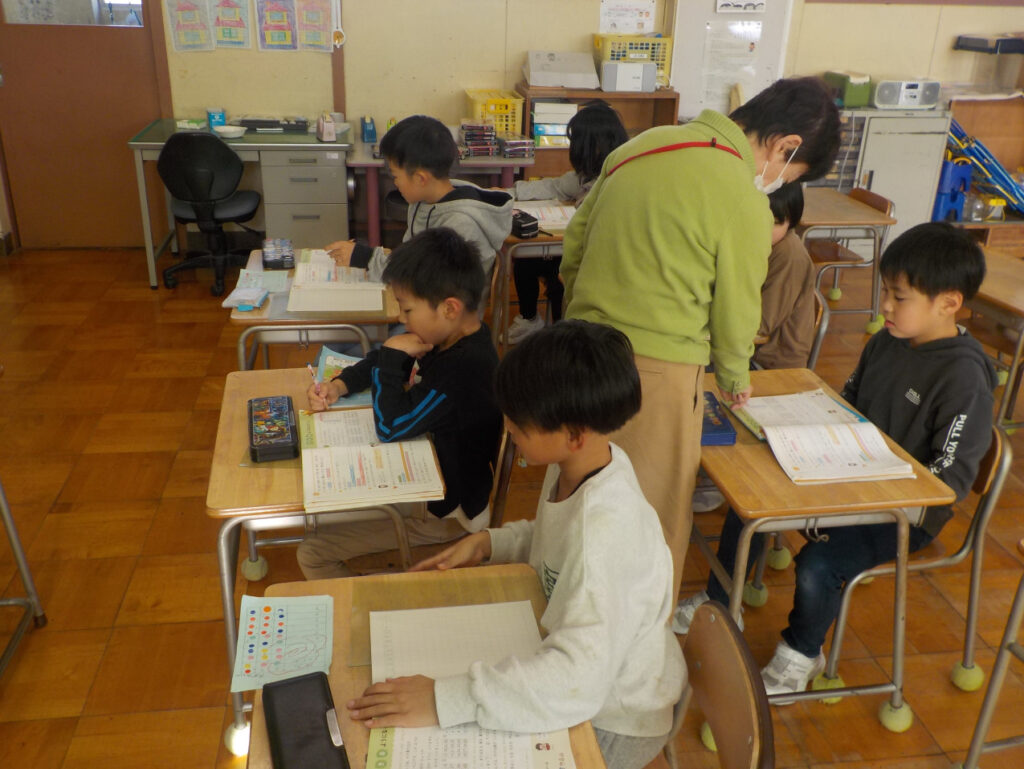 2年生は算数でかけ算のまとめをしていました。九九の表のどこに数字の表が当てはまるかを考えていました。もう九九は覚えて、すべて言えるようになったかな?