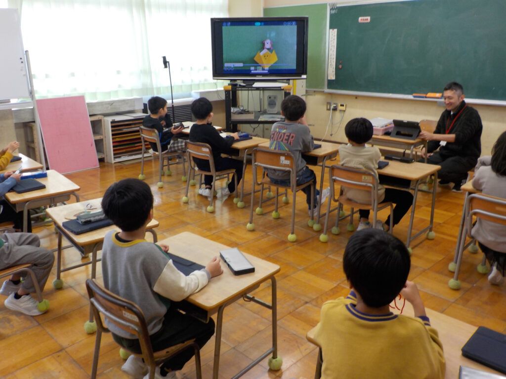 1・2年生は図工で、アニメーションづくりにチャレンジしていました。タブレットのアプリを使って、自分の作ったキャラクターをコマ撮りで撮影してアニメーションをつくります。楽しい作品ができそうです。