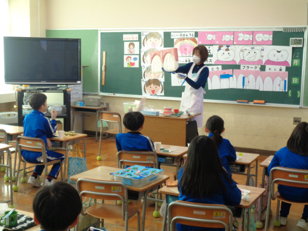 2・3年生は、歯みがきの巡回指導「歯みがき教室」を行いました。講師の歯科衛生士さんから、丁寧なみがき方を教わりました。歯の染め出しをして、1本1本丁寧にみがきました。毎日しっかりと歯みがきをして、自分の歯を虫歯から守っていってほしいです。