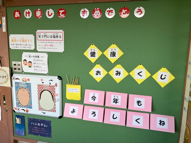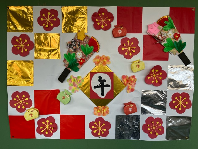 お正月にちなんだ掲示等が校内のあちらこちらに…。