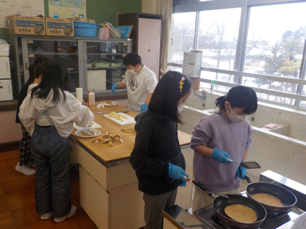 3年生は総合で、「1年間ありがとうの会」を開きました。総合でお世話になった地域の方をゲストにお招きして、楽しいパーティーを開きました。そら豆の甘納豆を売り上げたお金を材料費にして、クレープを作りました。