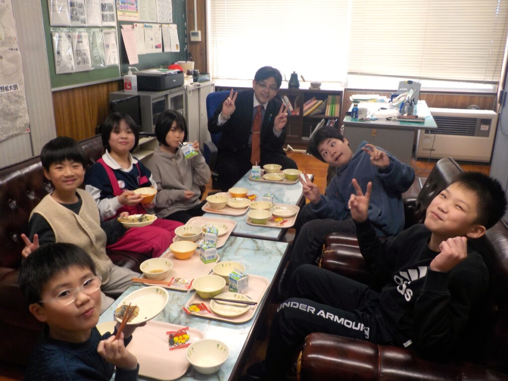 火曜日は校長室ランチの日です。今日も各学級から2名の子どもたちが校長室に来ました。「豆をいくつ食べる?」などの節分の話やクレーンゲームの話などで、楽しく盛り上がりました。給食を食べ終わると、腕相撲をしたり、ホワイトボードで3並べをしたり、南極の石を持ったりして教室へ戻りました。さて、次のゲストは誰になるのかな?
