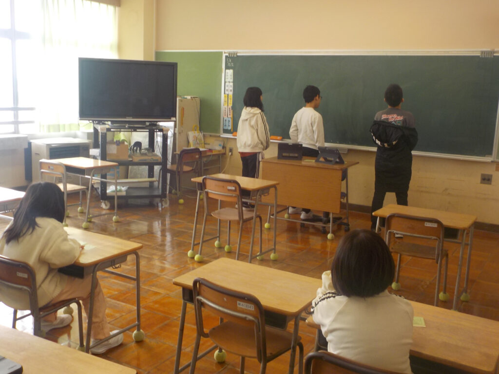 1・2年生は図工で、鬼のお面を作りました。タブレット端末で鬼の画像を選び、それを参考にして画用紙に鬼を描きます。ハサミで切り取って目を開けて、頭につけるための輪を着けて完成です。顔より小さいお面や目が近すぎて、着けたときにうまく見える?と心配になるお面もありましたが、一人一人個性のある自分らしいお面ができました。既に節分は過ぎてしまいましたが、心の中の鬼は、追い払ってほしいです。