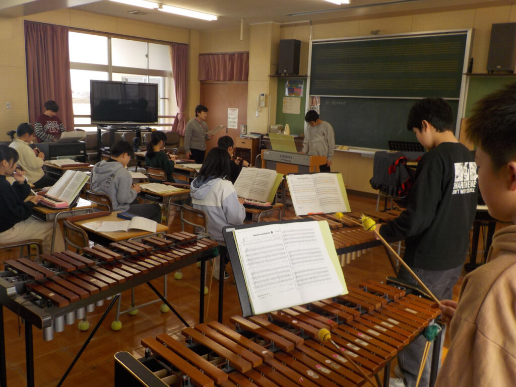 5・6年生は音楽で、新しい合奏にチャレンジしていました。新しい曲は「アフリカン・シンフォニー」です。まだ自分のパートも試行錯誤で、合わせるのに苦労していました。これから自分のパートを上達させながら、リズムを合わせて楽しく合奏できるとよいですね。