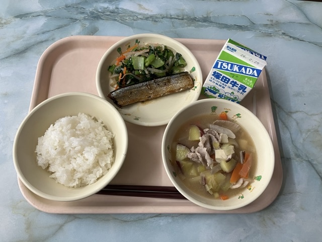 コシヒカリご飯、スキー汁、サンマの生姜煮、ゴマびたし、牛乳 でした。