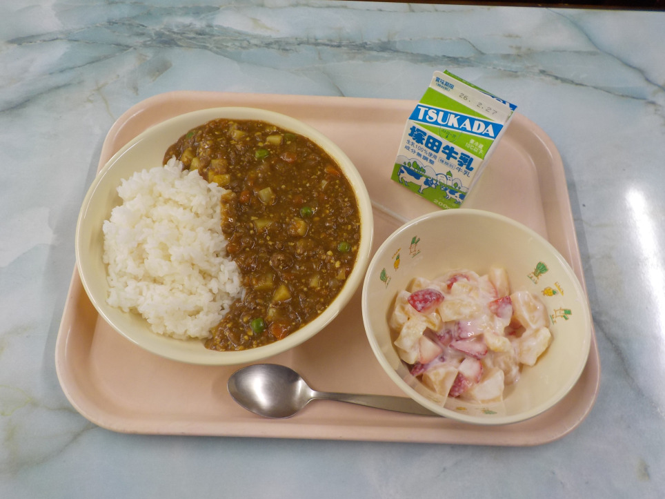 ご飯、キーマカレー、ヨーグルト和え、牛乳 でした。