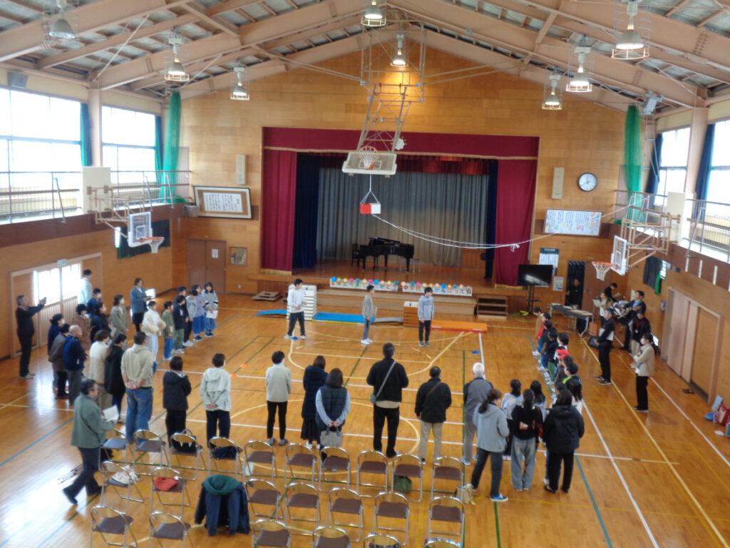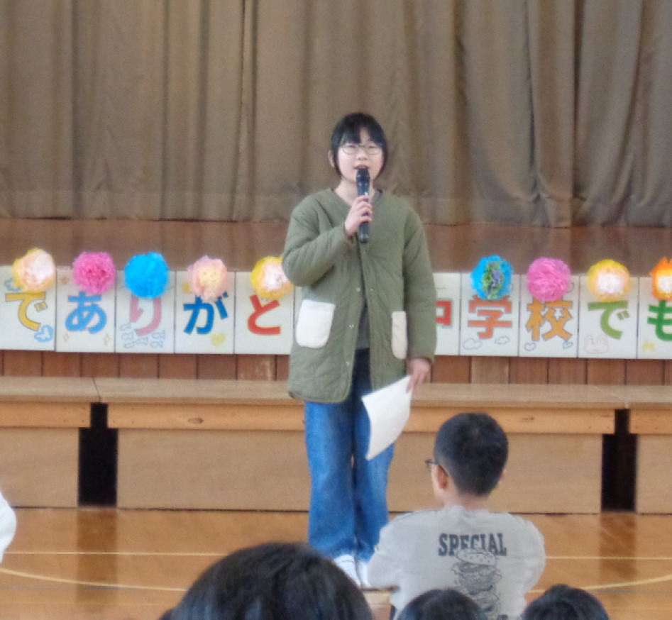 全校で「ありがとう」を心を込めて歌いました。体育館に子どもたち、職員、保護者、地域の方の声が響きました。