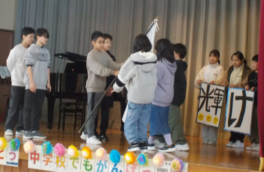 6年生から5年生へ引継ぎを行いました。6年生からは、「輝け」の言葉が送られました。