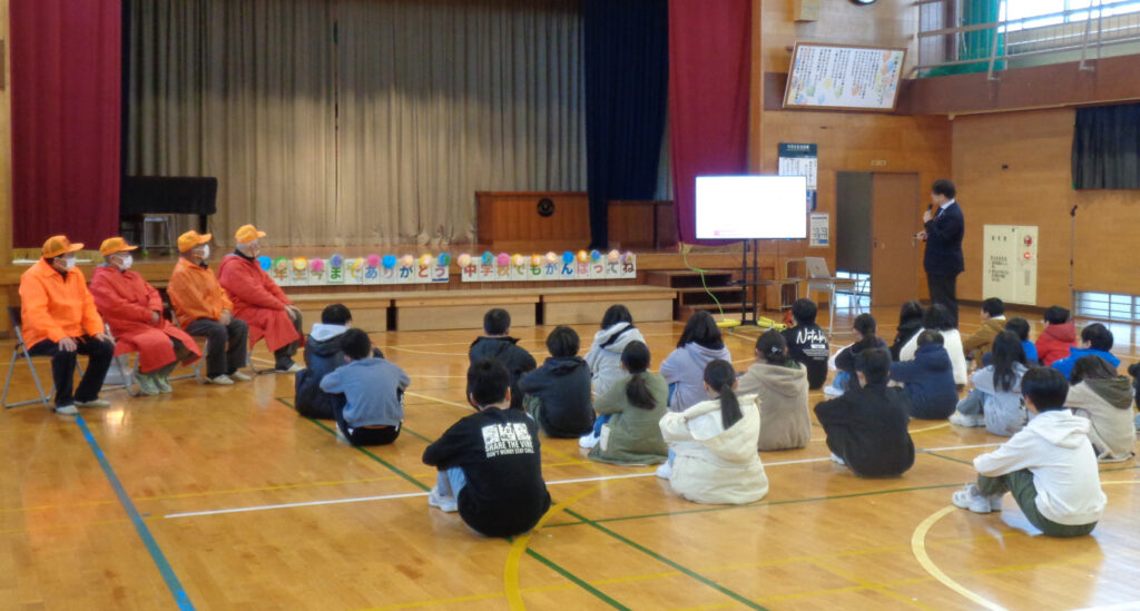 3月の全校朝会・見守り隊への感謝の会